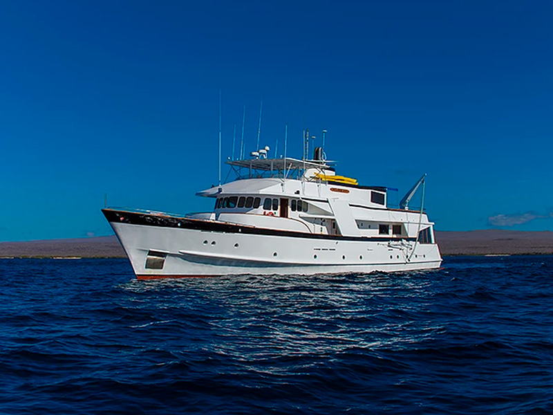 Built in Hamburg, Germany, in 1968 and refurbished in 1986, the Beluga is a sturdy and reliable First Class Superior motor yacht. Her spacious interior has a catching, modern design and is fully air-conditioned throughout the comfortable lounge and two separate dining rooms which accommodate eight guests each. The Beluga carries up to sixteen passengers who are sheltered in eight beautifully furnished staterooms. The Beluga is a fantastic way to cruise the islands with her ample deck space and panoramic windows in the dining area. Moreover, you will be well taken care of onboard by our captain, multilingual naturalist guide, cook, machinist, barman and four sailors.