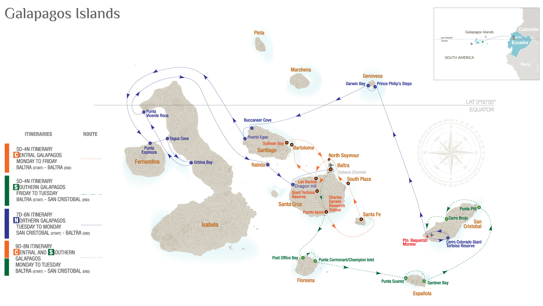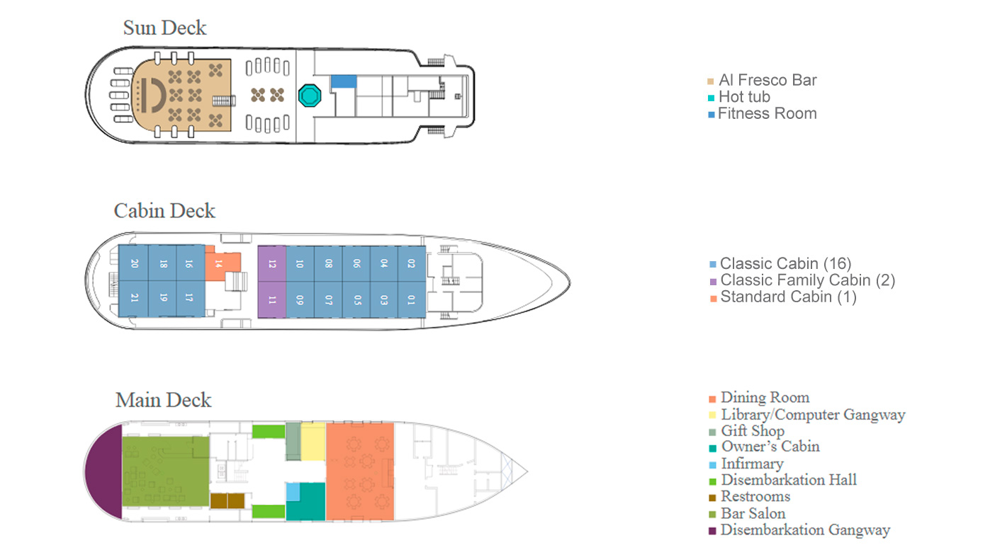 After driving down from the highlands, we will get the chance to visit the Charles Darwin Research Station and the numerous giant tortoises that reside there. The Station also serves as the headquarters for scientific investigation, conservation and the National Park administration. Afterwards, we will take a stroll down the main street of Puerto Ayora before embarking Yacht Isabela II. After checking in, you’ll be invited to the Captain’s Welcome Cocktail and then dinner.