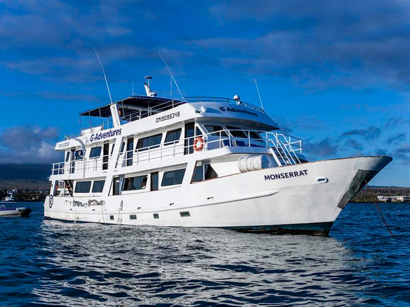 The Montserrat yacht is a great choice for anyone looking for an intimate and sociable small ship cruise around the splendid Galapagos Islands. With just ten cabins, the maximum number of passengers on any cruise is 20. Each comfortable cabin has a private bathroom, air conditioning, a hairdryer, and storage space. Snorkelling equipment, wetsuits, and beach towels are provided free of charge. Relax on the sun deck, admire the views from the observation deck, mingle at the bar, and enjoy some quiet time in the indoor lounge. There’s one naturalist per ten people, meaning that you really can get the best from your nature-spotting experiences and wildlife education. Dine on tasty cuisine in the dining room, with a buffet breakfast and lunch and an a la carte dinner.