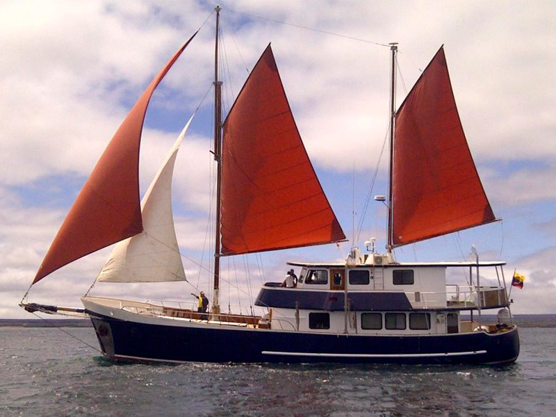 The Samba is a true European Dutch classic and a stately and comfortable Galapagos sailing vessel. Guests will be pleasantly accommodated in seven double rooms, six with air-conditioning, and each with private facilities and hot water. An ample dining room/salon connects to an outdoor dining facility with large tables, a TV and video system, sound system, mini library of books and videos, and a small bar. The Samba is a graceful, top-quality craft; she is as environmentally friendly as she is socially responsible. She is locally owned, and the entire crew is devoted to making your journey the trip of a lifetime.