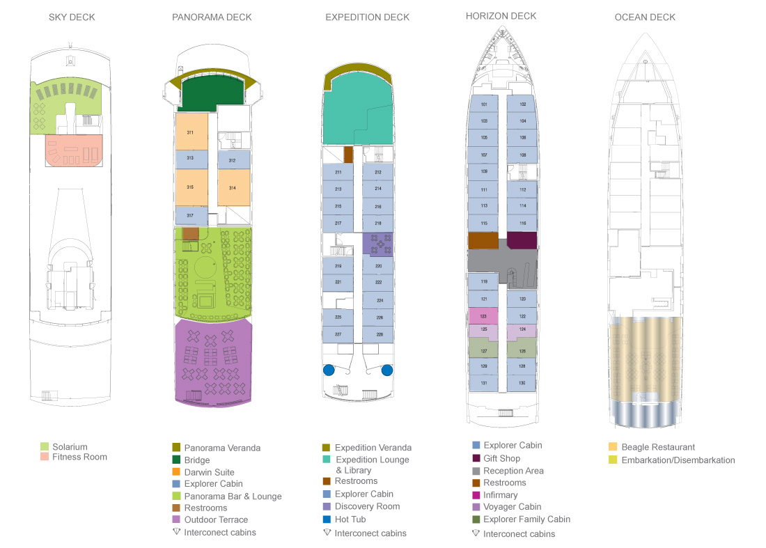5) Explorer Family Cabins (2) for twin/double use incur a 50% surcharge per person.