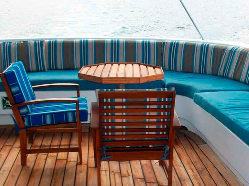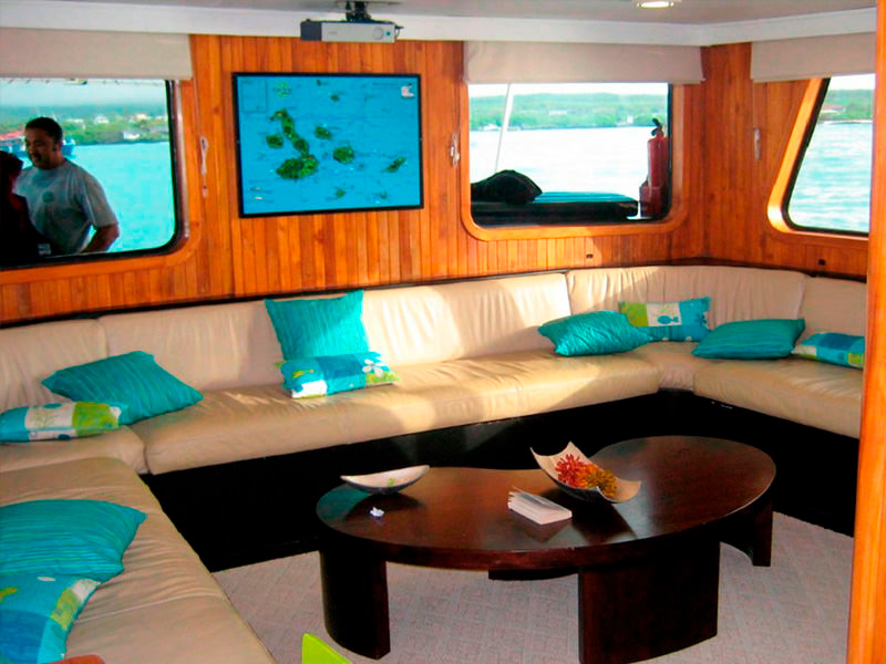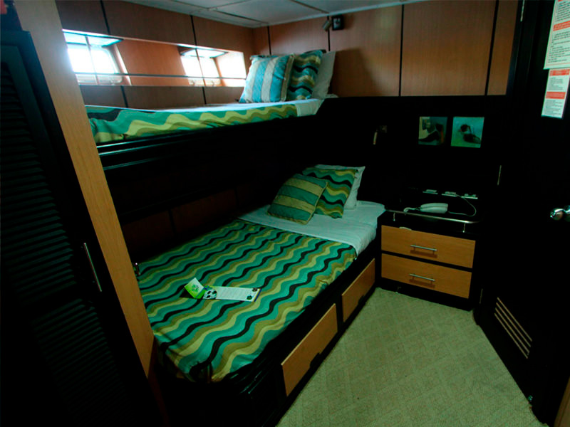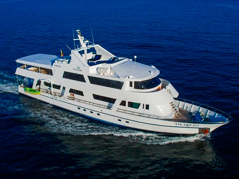 The Tip Top III is a slightly larger and newer version of its sister ship, the Tip Top II. With a large sundeck and easy access off the back, she is perfect for snorkelling and enjoying the Galapagos Islands. Each of the craft’s nine cabins comes with a private bathroom (equipped with both hot and cold water), a personal safe, and wardrobe. The Tip Top III is fully air-conditioned and carpeted inside, with amenities that include a TV/VCR with sound system, an inviting dining room, a well-stocked bar, an informative library, and a roomy sundeck.